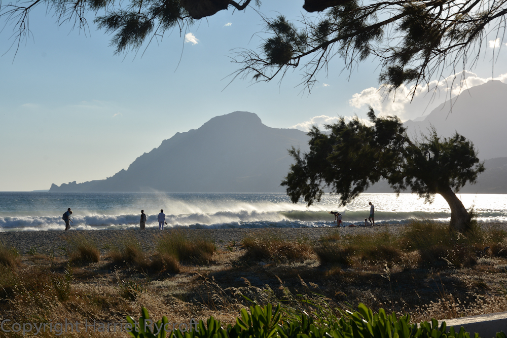 June saw us in Crete, part of the time in the notoriously windy seaside resort of Plakias. Having been brought up near Exmoor I’ve always been fond of wind-pruned trees.