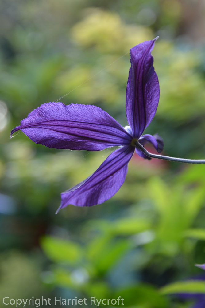 In the morning I like to be able to look through the glass of the kitchen door at the back of ‘Polish Spirit’ – you don’t often get to see clematis flowers from behind and backlit. I love that rich, purplish blue. I can also talk to it while I’m hanging out the washing. Yes of COURSE I talk to my plants – don’t you?