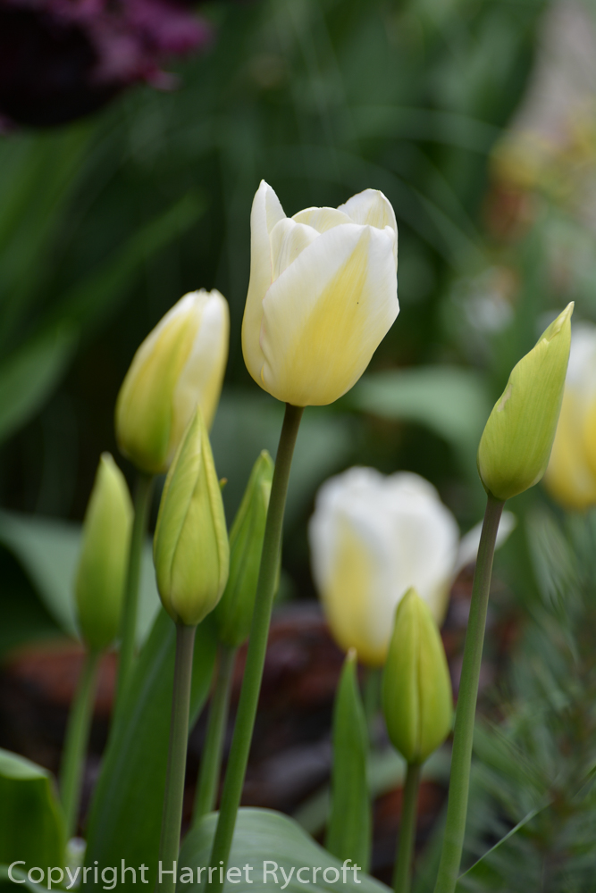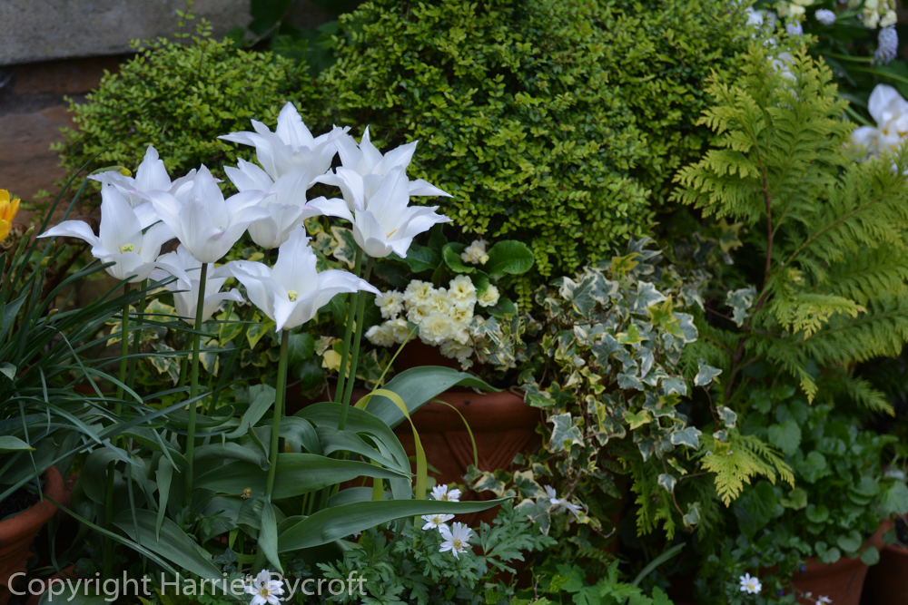 Tulipa ‘Coquette’ is the white tulip centre right