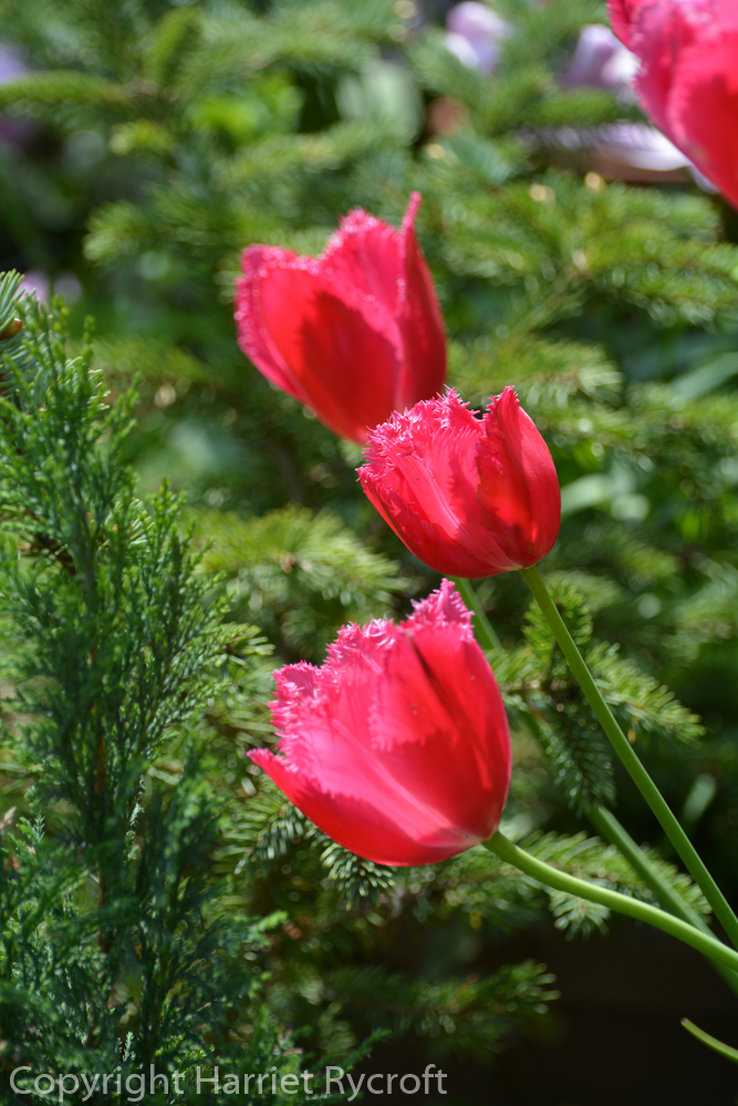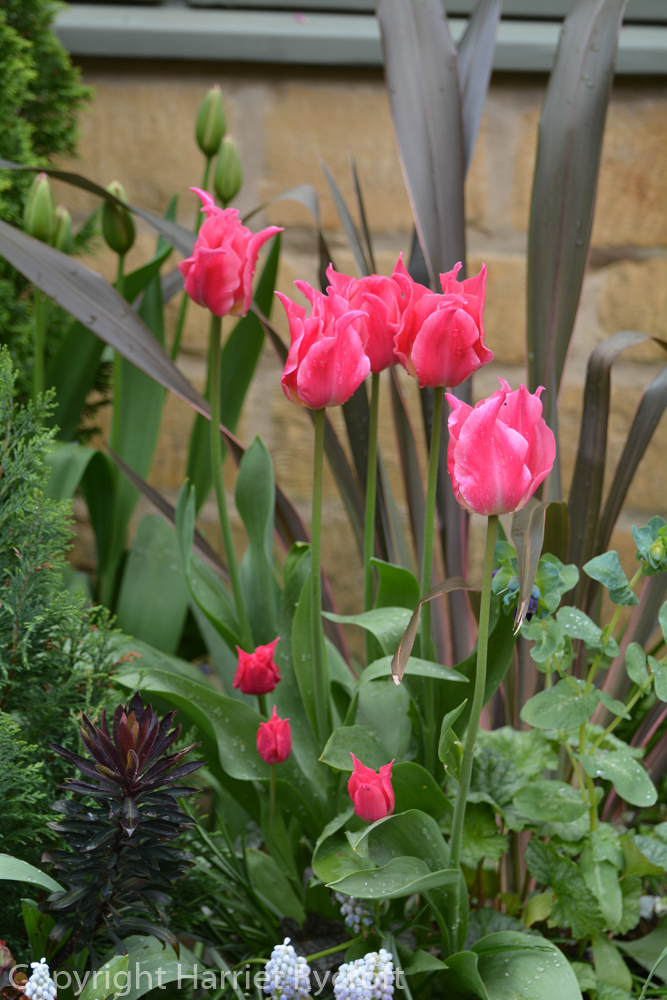 Tulipa ‘Pink Diamond’ is at the rear right of this picture