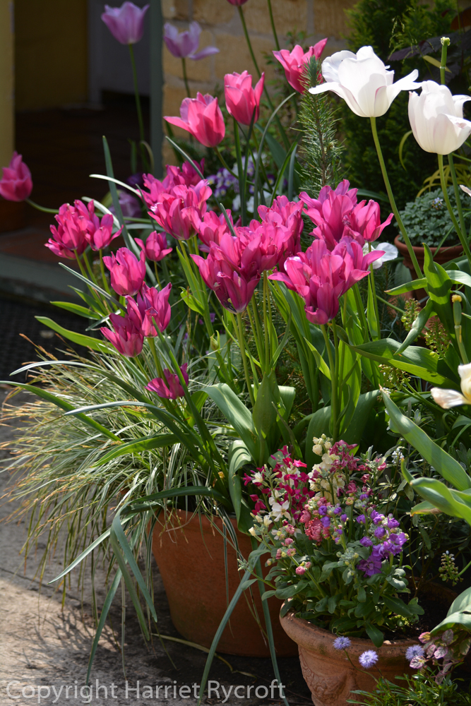 Tulipa 'Pink Diamond' is at the rear right of this picture