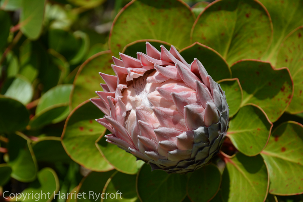 I’ve never really been interested in Proteas. I know people who are keen on them to the point of geekery, but I have only really been dimly aware of them. I was dimly aware of them as a child because my mother’s best friend was brought up in South Africa and her cut flower of choice was the Protea, even in her wedding bouquet. I was her sole, podgy, bridesmaid in a long cream crimplene dress (this was the 1970s) and must at some stage have had to look after that bouquet.