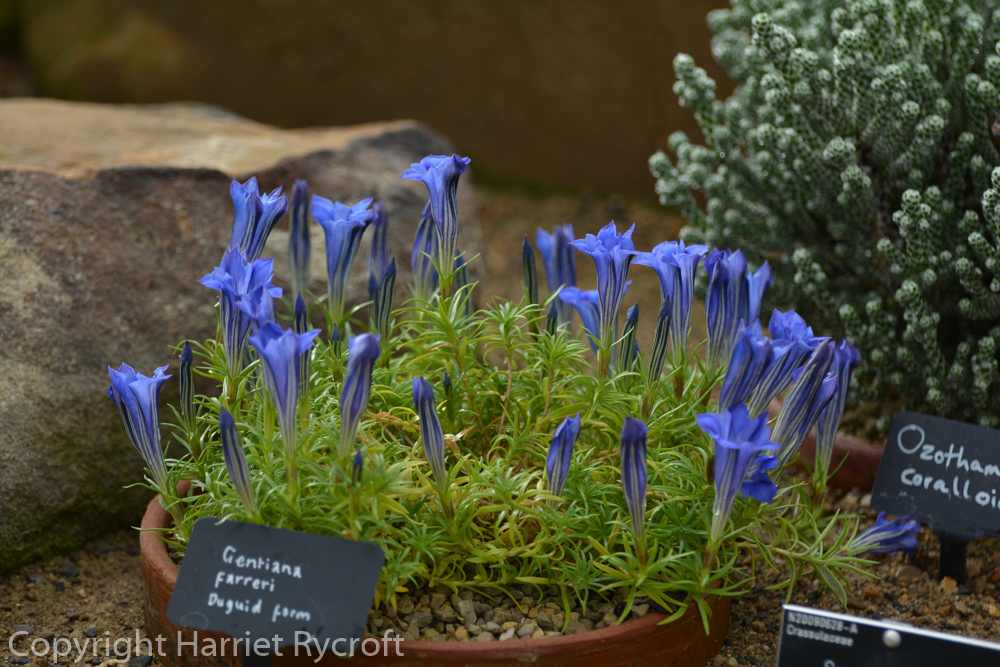 I’ve always associated gentians with spring and early summer, ever since being startled by them on an Austrian mountainside at the age of 15, but a walk around the Royal Botanic Garden, Edinburgh last week, and RHS Harlow Carr this week, reminded me that the gentian season is longer. In fact I think it’s quite possible that there may be a species of Gentiana flowering somewhere in the world every day of the year. It’s an enormous genus and of course not all of them are blue – but I have a terrible weakness for blue flowers.