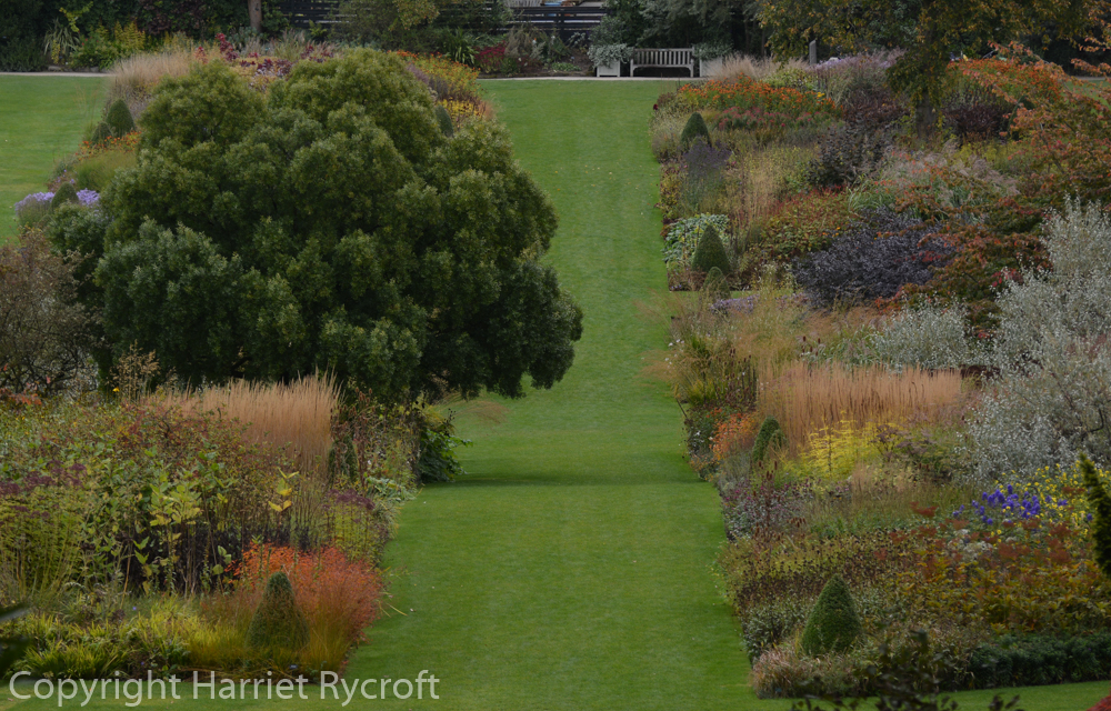 This year it seemed to me that even though the recent rainy days had finished off most of the Aster/Symphyotrichon/whateveritscallednowadays the long double borders were looking extra magnificent, the plants in interleaved blocks, their rich colours muted by the cooling season but all the lovelier for that, like a venerable kilim. 20161012-dsc_7869 20161012-dsc_7939 20161012-dsc_7976